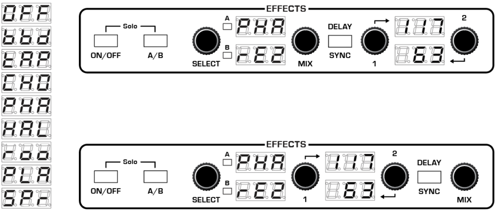In situations like this, I would typically have an alternative solution available to show how it could be done. I made a drawing of just the Effects section with dual effects that was substantially the same as what ended up in production, but don’t remember if I did it before or after the meeting. A bit of trivia: The Effects section breaks the rule we had established regarding the user interface being knob- and switch-per-function. The single effect version had a Mix knob that was a potentiometer or “pot.” In manual (Preset off) mode, the knob would have accurately reflected the current value of the effect mix. In the dual effects layout, Mix is a rotary encoder and you don’t know what the level of the active effect is until you turn the knob, displaying it temporarily in place of the effect type. I could not come up with a better solution given the limited amount of space available. I think it was worth compromising to get that second effect.